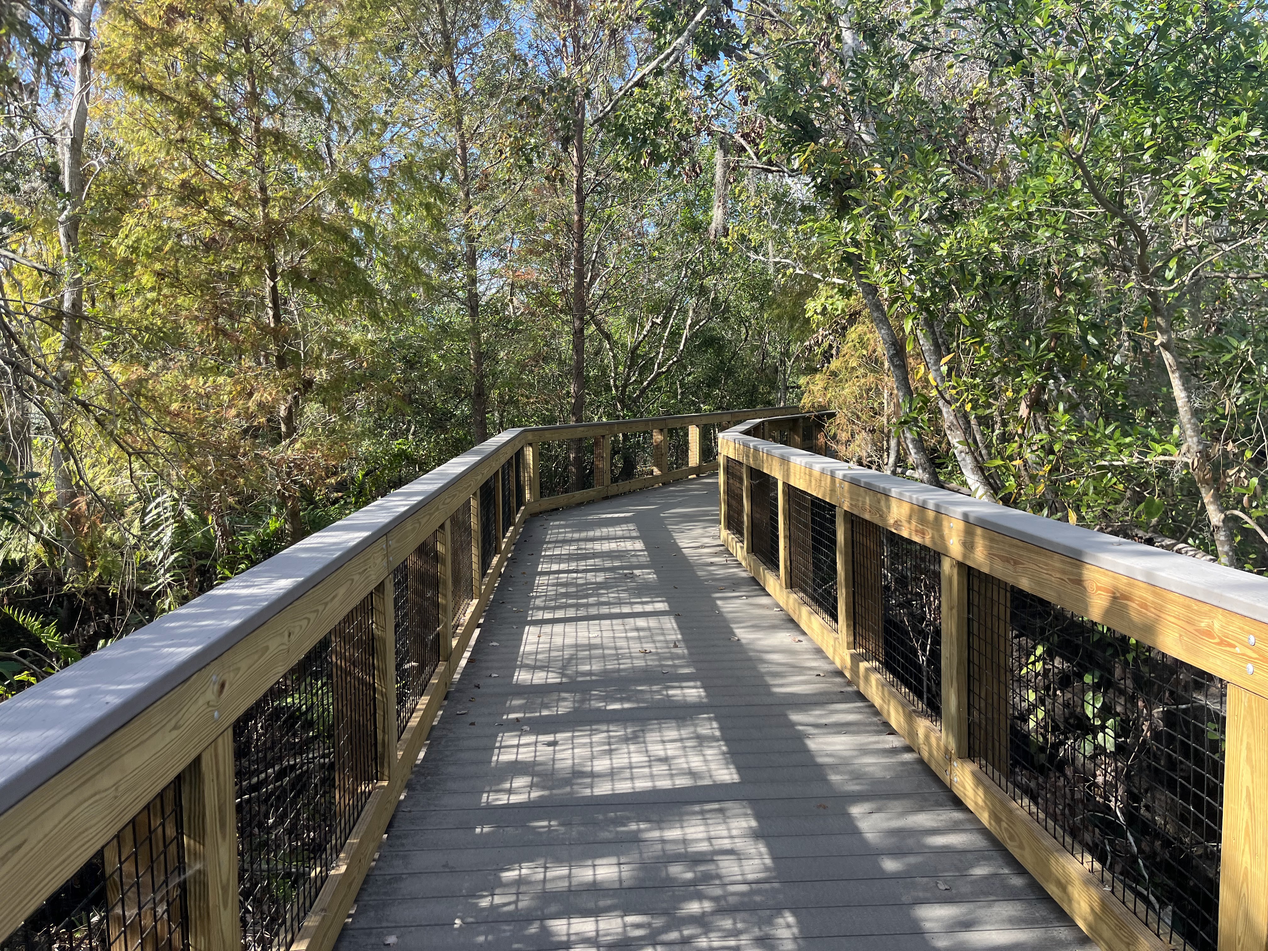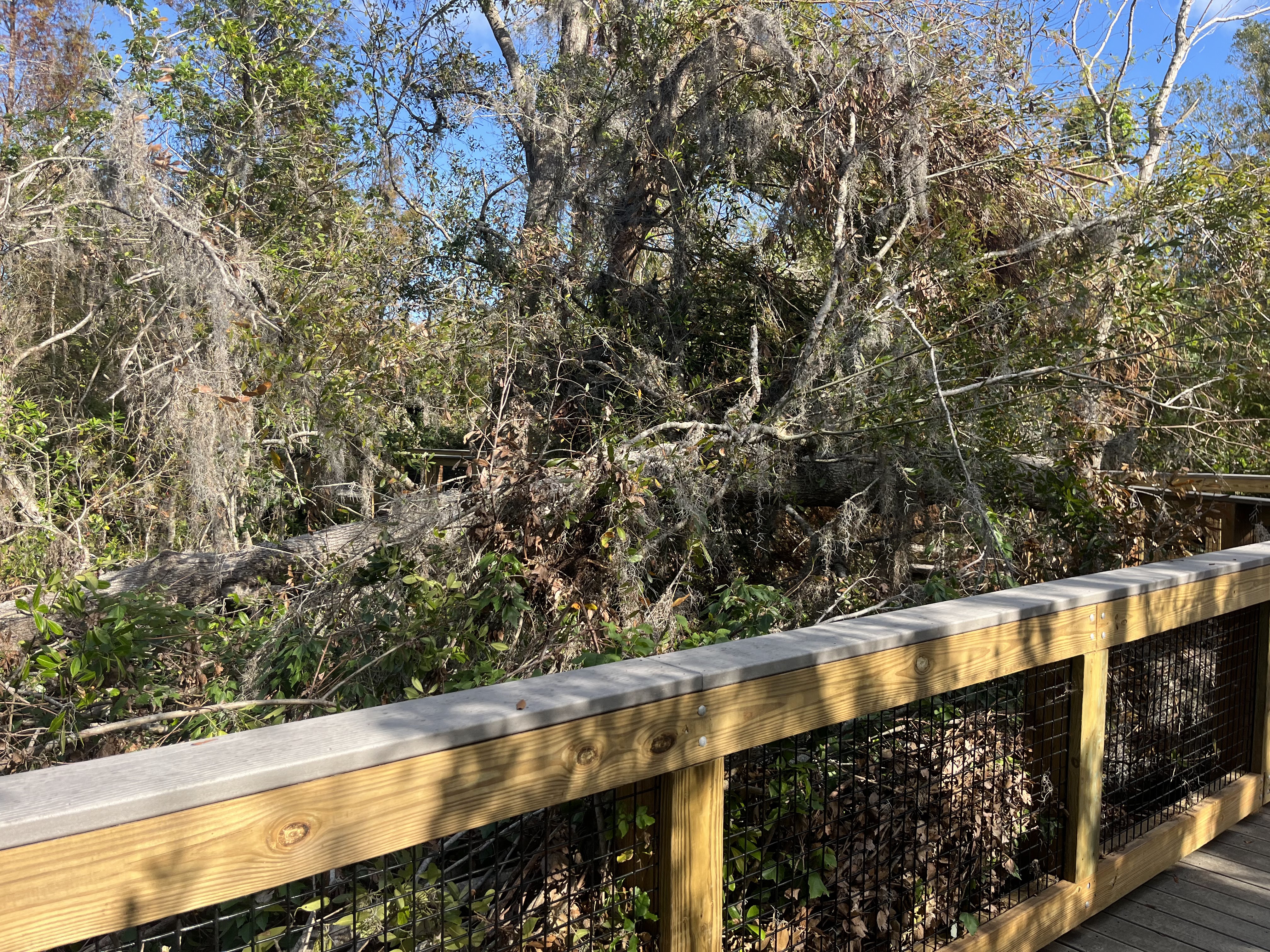 The boardwalk is about a half-a-mile long. While walking, I could see a bit of the impact the storms had had on the park’s flora. I assume it would have been much worse before the park staff began to cleanup and fix up the park.