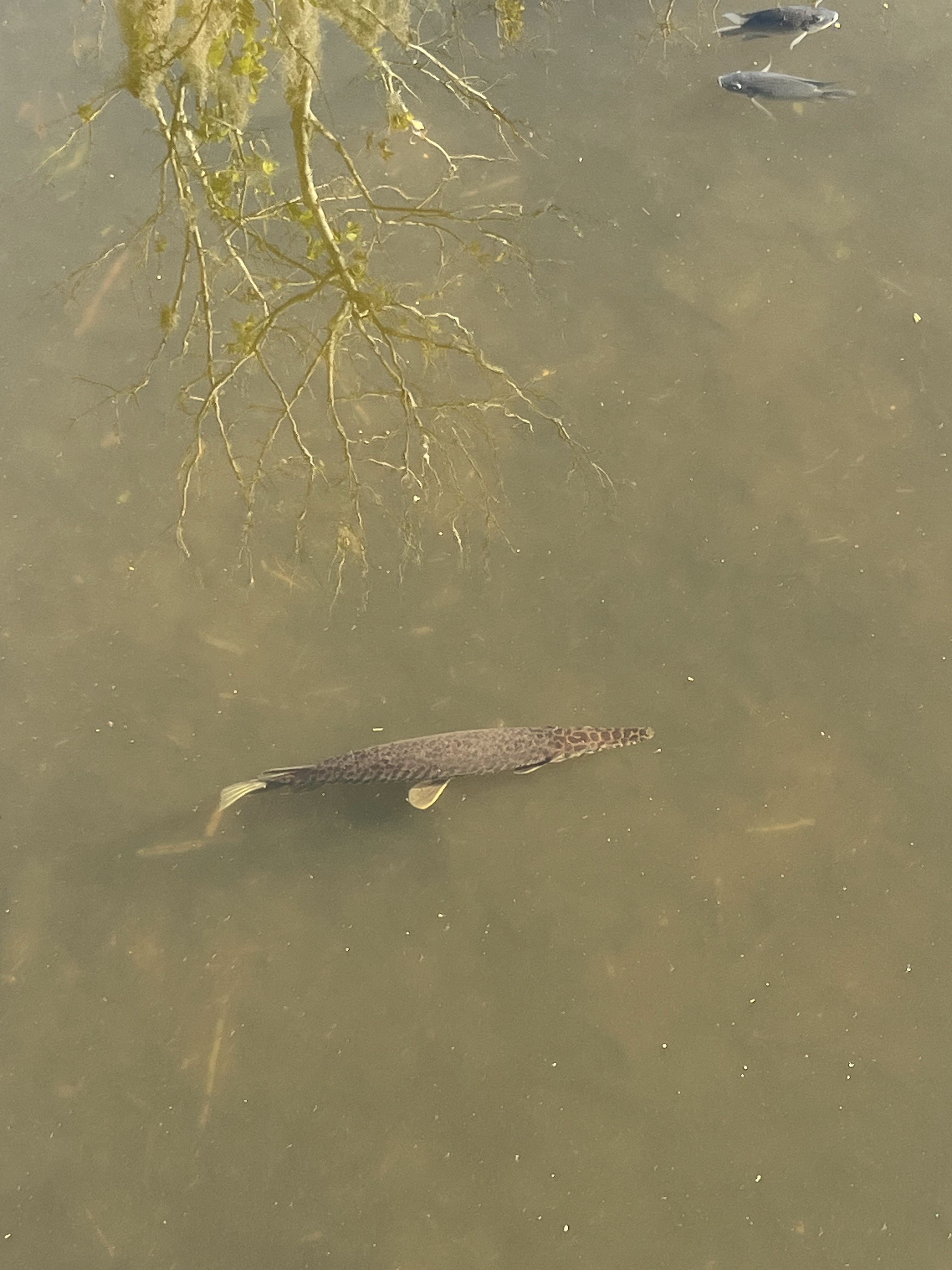 While walking, I saw a few juvenile alligators (unpictured) and some fish congregated near their lookout tower, including the always-cool-to-see Florida gar. (Forgive me, and correct me, if I’ve identified it wrong. I know it’s a gar and it seems to match the Florida gar description best, but I am no ichthyologist.)